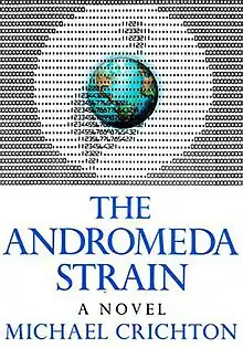The Andromeda Strain is a 1969 novel by American writer Michael Crichton, his first novel under his own name and his sixth novel overall. It documents the outbreak of a deadly extraterrestrial microorganism in Arizona and the team of scientists investigating it. The book is framed as a report from a secret government project, which the scientists are part of, and includes text-based computer imagery illustrating the results of various tests on the organism.