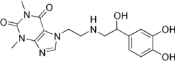 Theodrenaline (INN), also known as noradrenalinoethyltheophylline or as noradrenaline theophylline, is a chemical linkage of norepinephrine (noradrenaline) and theophylline used as a cardiac stimulant.[1][2] It is sometimes combined with cafedrine.[1][2]