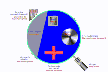 The patient is placed on a fixed stretcher. Above them is a turntable to which the components that modify the electron beam are fixed. The turntable has a position for the X-ray mode (photons), another position for the electron mode and a third position for making adjustments using visible light. In this position an electron beam is not expected, and a light that is reflected in a stainless steel mirror simulates the beam. In this position there is no ion chamber acting as a radiation dosimeter because the radiation beam is not expected to function.
