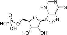 - ↑ Sahasranaman, S.; Howard, D.; Roy, S. (2008). "Clinical pharmacology and pharmacogenetics of thiopurines". European Journal of Clinical Pharmacology. 64 (8): 753–767. doi:10.1007/s00228-008-0478-6. PMID 18506437. S2CID 27475772.