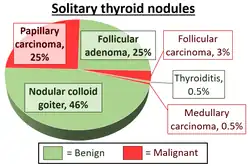 Relative incidences of histopathologic diagnoses of solitary thyroid nodules that have undergone fine needle aspiration[25]