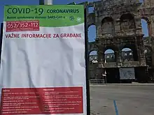 - ↑ "Stožer donio nove mjere za područje Zadarske županije, na snazi su do 1. studenog". Večernji list (in Croatian). 9 September 2020. Retrieved 11 September 2020.