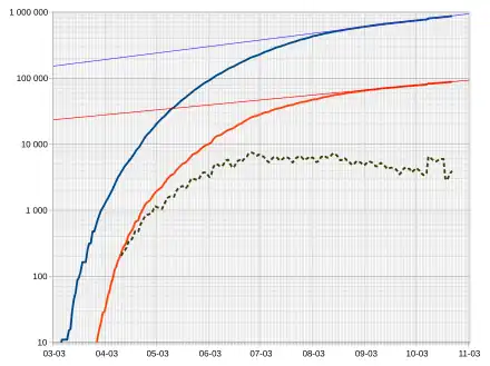 On April 3, 1,688 cases and 60 deaths were confirmed by the Secretariat of Health.[126] The following day, 202 more cases and 19 more deaths were confirmed by Mexican authorities.[127]