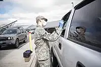 On April 1, 2020, Sisolak activated the Nevada National Guard to help deliver medical supplies.[16][114] Within a few weeks, he announced that an additional 700 members of the National Guard would join the coronavirus efforts. Most of them would be stationed in Las Vegas, where they would set up alternate care facilities, help with food banks, and provide medical support.[114] The Nevada National Guard concluded its mission on April 1, 2022, after two years. It was the longest activation in Nevada history since World War II.[115][116]
