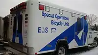 • Bicycle Unit - Paramedics equipped with mountain bikes, capable of providing either BLS or ALS services in off-road areas, or at special events. Team also works in concert with the Toronto Police bike team to provide first response capabilities in the Entertainment District on weekend nights.