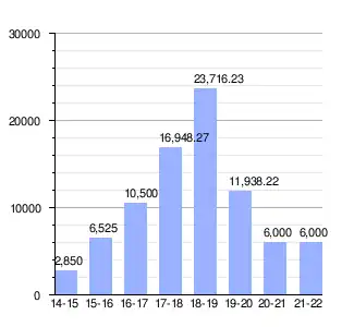 | Vertical bar chart SBM budget (2014–2022) of Swachh Bharat Mission between 14-15 and 21-22 |
