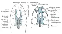 - ↑ their derivatives are called the prechordal cranium (Couly et al., 1993)