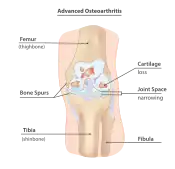 - ↑ Tanamas SK, Wluka AE, Pelletier JP, Pelletier JM, Abram F, Berry PA, et al. (December 2010). "Bone marrow lesions in people with knee osteoarthritis predict progression of disease and joint replacement: a longitudinal study". Rheumatology. 49 (12): 2413–2419. doi:10.1093/rheumatology/keq286. PMID 20823092.