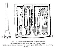 - ↑ τρύπανον. Liddell, Henry George; Scott, Robert; A Greek–English Lexicon at the Perseus Project.