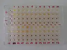 Fig. 1: Microwells showing positive and negative TPHA test