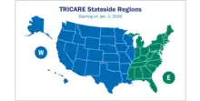 On January 1, 2018 the Tricare Stateside regions were consolidated into two large regions, Tricare East and Tricare West.