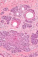 | Micrograph of a trichoepithelioma. H&E stain. | |