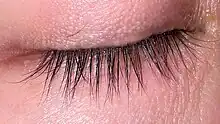 | Trichomegaly in an adult human male, his upper lashes measuring 14 mm long | |