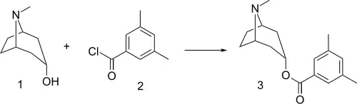 Tropanserin can be prepared by the reaction of tropine with 3,5-dimethylbenzoyl chloride.