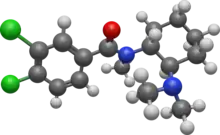 - ↑ Harper NJ, Veitch GB, Wibberley DG (November 1974). "1-(3,4-Dichlorobenzamidomethyl)cyclohexyldimethylamine and related compounds as potential analgesics". Journal of Medicinal Chemistry. 17 (11): 1188–1193. doi:10.1021/jm00257a012. PMID 4416926.