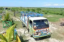 The NGO SOIL in Haiti began building UDDTs and composting plants in Port-au-Prince as part of the 2010 Haiti earthquake emergency relief effort in northern Haiti.[40] They have since branched out into providing toilets for residential use, this being their primary goal moving forward as they transition their focus from emergency relief to providing sustainable and ecological sanitation for paying customers. Their current dry toilet design for households includes a small portable single vault unit made out of wood that is either fitted with a single container for combined excreta collection or with a urine diversion insert, with 80% of these installations currently being of the UDDT type. As of 2014, SOIL has transformed all of their public UDDT vault toilets to an open vault design with removable plastic drums for feces collection. This improves the processes by which feces is collected and transported to their waste treatment facility, making their business now a fully "container-based system".[41] This allows SOIL to respond to heavy use (since their toilets were filling up too quickly) and ensures a safe final product for reuse. In most cases, these UDDTs utilize soak pits (normally located directly beneath the toilet superstructure) for onsite disposal of urine.