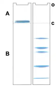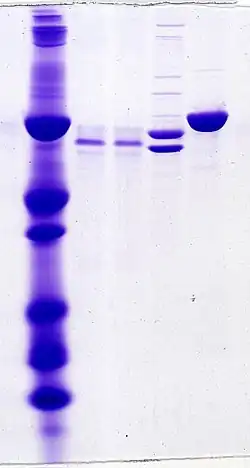 - ↑ Schägger, Hermann; von Jagow, Gebhard (1991). "Blue native electrophoresis for isolation of membrane protein complexes in enzymatically active form". Analytical Biochemistry. 199 (2): 223–231. doi:10.1016/0003-2697(91)90094-A. PMID 1812789.