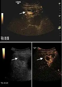 The efficiency of 2D ultrasound is low in assessing the effects of HCC or metastasis therapy, as it is unable to differentiate viable tumor tissue from post-therapy tumor necrosis.