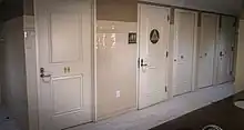 If more than one toilet fixture is available in a unisex public toilet, the toilet seats or squatting pans are installed in enclosed cubicles in the same way as in sex-segregated toilets. To ensure visual privacy, these may be provided with floor-to-ceiling walls.[15]
