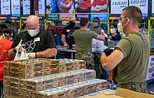By the end of March, states were in a bidding war against each other and the federal government for scarce medical supplies such as N95 masks, surgical masks, and ventilators.[64][65][66] Meanwhile, as states scrambled to purchase supplies at inflated prices from third party distributors (some of which later turned out to be defective), hundreds of tons of medical-grade face masks were shipped by air freight to foreign buyers in China and other countries.[56]