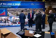 Medical organizations such as the American Medical Association and American Nurses Association implored Trump to obtain medical supplies, because they were "urgently needed".[67][68] That led President Trump to sign an order setting motion parts of the Defense Production Act, first used during the Korean War, to allow the federal government a wide range of powers, including telling industries on what to produce, allocating supplies, giving incentives to industries, and allowing companies to cooperate.[69][70] Trump then ordered auto manufacturer General Motors to make ventilators.[71]