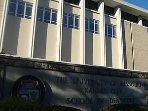 The dental school was established in 1881 as the Kansas City Dental College and was originally part of Kansas City Medical College.[2] The Kansas City Dental College merged with Western Dental College to form the Kansas City-Western Dental College. In 1941, the Dental College affiliated with the privately supported University of Kansas City and became that institution's School of Dentistry. In 1961 the University of Kansas City joined the four-campus state University of Missouri system. Since then the dental school has been known as the UMKC School of Dentistry.[3]