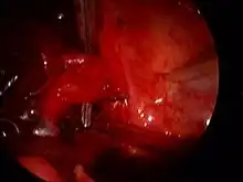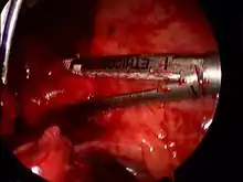 VATS lobectomy is the same as lobectomy performed via thoracotomy in that the pulmonary artery, pulmonary vein, and bronchus to the involved pulmonary lobe are individually dissected, ligated and divided. Generally, endoscopic stapling devices are used to ligate and divide the vessels and the bronchus however conventional suture material can also be used. During VATS lobectomy, the structures being operated on are not directly visualized with the naked eye but are visualized solely with a rigid thoracoscope. A camera attached to the thoracoscope transmits the image to a video screen, which allows surgeons and assistants to observe the flow of the operation. Surgical specimens are placed into a water-tight bag and removed from the chest without morcellization (i.e. breaking up the specimen into small pieces before removal); this prevents seeding of the VATS incisions with tumor cells and allows for an intact specimen for pathology examination and cancer staging. Removal of lymph nodes from the mediastinum is not compromised by VATS and remains a cornerstone of the surgical therapy of lung cancer. Visualization is enhanced due to the magnification afforded by the fiberoptic thoracoscope and a 30-degree angle of visualization aids in looking around corners. However, because the incisions are too small to allow passage of the surgeon's hands into the thorax, the surgeon's tactile input is compromised. VATS operations rely on a thorough understanding of pulmonary anatomy to allow for strategically placed incisions (usually 3–5 incisions total). The main advantages of VATS over thoracotomy are that major muscles of the chest wall are not divided and rib spreaders that can lead to rib fractures or costovertebral joint pain are not used. This results in a hospital length of stay after VATS lobectomy generally reported to range from 3–5 days,[4] or roughly half that for lobectomy via thoracotomy.