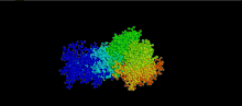 Gp41 is exposed with the assistance of another glycoprotein (gp120) also located in the envelope of the retrovirus.[11] The structural reason is based on the fact that two gp41 combine with other gp120 composing a trimer.[12] Firstly, it interacts with the receptor CD4 of a T4 human cell (also called Th or helper lymphocyte). The fusion causes an increase of concentration of HIV-1 on the target cell’s surface, and that promotes a switch which increases the affinity of gp120 for chemokine receptors that are disposed onto the target cell surface. This interaction produces a conformational change in the glycoprotein gp120 that exposes gp41. This process would be active because VIR-576 does not interferes in this part of it, but when gp41 is exposed, the developed drug VIR-576 would commence its mechanism of action and the inhibition of the fusion would start to take place.