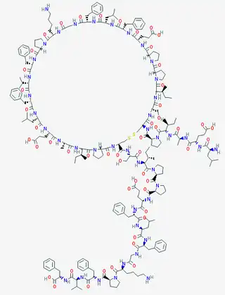 In 2007,[5] a new natural peptide was discovered in the human organism and was called VIRIP. It is generated from alpha-1-antitrypsin, a protease inhibitor that belongs to the serine family, by matrix metalloproteinases. It was shown that it could interact with the HIV-1 and stop the virus multiplication. In spite of interacting in a highly intensity with gp-41,[2] the VIRIP did not prevent the multiplication of the virus. So, it was decided to increase the efficacy of this molecule creating other ones that could be more powerful. Among these 600 created molecules,[6] there was the VIR-576 which was synthesized using the solid-phase peptide synthesis method. Moreover, another molecule was used to protect the amino groups, the fluorenylmethyloxycarbonyl chloride. The next step was the purification before lyophilizing it with mannitol. Other peptides were made such as the VIR-353 or the VIR-449.