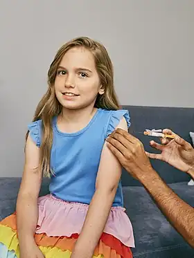Vaccination is the administration of a vaccine to help the immune system develop immunity from a disease. Vaccines contain a microorganism or virus in a weakened, live or killed state, or proteins or toxins from the organism. In stimulating the body's adaptive immunity, they help prevent sickness from an infectious disease. When a sufficiently large percentage of a population has been vaccinated, herd immunity results. Herd immunity protects those who may be immunocompromised and cannot get a vaccine because even a weakened version would harm them.[1] The effectiveness of vaccination has been widely studied and verified.[2][3][4] Vaccination is the most effective method of preventing infectious diseases;[5][6][7][8] widespread immunity due to vaccination is largely responsible for the worldwide eradication of smallpox and the elimination of diseases such as polio and tetanus from much of the world. According to the World Health Organization (WHO), vaccination prevents 3.5–5 million deaths per year.[9] A WHO-funded study by The Lancet estimates that, during the 50-year period starting in 1974, vaccination prevented 154 million deaths, including 146 million among children under age 5.[10] However, some diseases have seen rising cases due to relatively low vaccination rates attributable partly to vaccine hesitancy.[11]