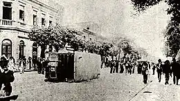 ![]() Tram overturned by the population in Praça da República during an uprising | |