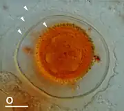 One of the earliest unambiguous reports of a vampyrellid is the mid-19th century description of Amoeba lateritia (now known as Vampyrella lateritia) by the German botanist Georg Fresenius.[13] The first extensive documentation of their life history and feeding behavior was provided in 1865 by the Polish protozoologist Leon Cienkowski, who created the genus Vampyrella and classified it in a subgroup of the 'monads',[14] a polyphyletic assemblage of parasitoid protists. Posterior works and monographs described numerous aquatic vampyrellid species, with important observations of their behaviour and ecology. In 1885, the German mycologist Wilhelm Zopf demonstrated the presence of nuclei in vampyrellids and erected the first family, Vampyrellidae.[15][16][3]