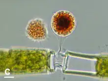- Colony invasion. They attach to the colonies of volvocalean algae, dissolve and penetrate the extracellular gelatinous mucilage matrix, and phagocytose individual cells inside the colony. Possibly for protection against predators, they transform into digestive cysts inside of the colony.[3]