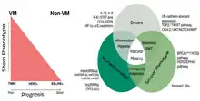 Cancer stem cells (CSCs) is a theory which explains the heterogeneity of tumors. This theory states that tumors arise from a small subpopulation of cancer cells which have the ability to self-renew as well as differentiate.[15] These CSCs give rise to unique cell subpopulations within the tumor through differentiation, which express unique cell characteristics that further drive tumor growth and metastasis. CSCs have been linked to driving VM formation predominantly through the secretion of VEGF, which is a well establish regulator or VE-cadherin expression.[10] Within the CSCs, several studies have identified specific subtypes of cancer stem cells which are linked to promoting VM formation, including stem cells expressing CD133+ in acute leukemia,[10] melanoma,[10] and Triple negative breast cancer (TNBC).[3]