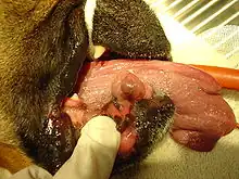 Anesthetised dog with an epulis
