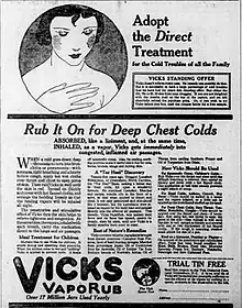 - ↑ "Vicks VapoRub Topical Ointment Children's Cough Medicine". vicks.com. Archived from the original on December 9, 2014. Retrieved June 17, 2017.