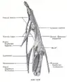 ![]() Tendons of forefinger and vincula tendina. (Vincula brevia labeled at lower left; vincula longa labeled at bottom center.) | |