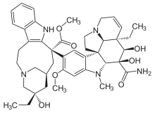- ↑ Martino E, Casamassima G, Castiglione S, Cellupica E, Pantalone S, Papagni F, Rui M, Siciliano AM, Collina S (September 2018). "Vinca alkaloids and analogues as anti-cancer agents: Looking back, peering ahead". Bioorganic & Medicinal Chemistry Letters. 28 (17): 2816–2826. doi:10.1016/j.bmcl.2018.06.044. PMID 30122223. S2CID 52039135.