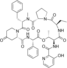 - ↑ Crooy P, De Neys R (June 1972). "Virginiamycin: nomenclature". The Journal of Antibiotics. 25 (6): 371–2. doi:10.7164/antibiotics.25.371. PMID 4568014.