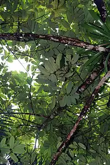 Virola is a genus of flowering plants in the nutmeg family, Myristicaceae. It includes medium-sized trees native to rainforests of the tropical Americas, ranging from southern Mexico to Bolivia and southern Brazil.[1] Species are known commonly as epená, patricá, or cumala. They have glossy, dark green leaves and clusters of tiny yellow flowers, and may emit a pungent odor.