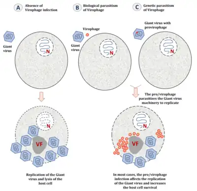 2. Duponchel, S; Fischer, MG (March 2019). "Viva lavidaviruses! Five features of virophages that parasitize giant DNA viruses". PLOS Pathogens. 15 (3): e1007592. doi:10.1371/journal.ppat.1007592. PMC 6428243. PMID 30897185.
