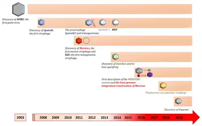 Timeline of virophage discoveries 2003–2019