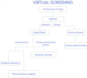 There are two broad categories of screening techniques: ligand-based and structure-based.[7] The remainder of this page will reflect Figure 1, the flow chart of virtual screening.