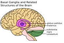 Parkinson's disease is characterized by progressive deterioration of movement and coordination. Patients with Parkinson's disease lose dopaminergic (DA) neurons in the substantia nigra,[14] a part of the brain that plays a central role in such brain functions as reward, addiction, and coordination of movement. Studies suggest that low vitamin D levels could play a role in PD, and in one case report, vitamin D supplements lessened parkinsonian symptoms. In a study of vitamin D receptor knockout mice, mice without VDR exhibited motor impairments similar to impairments seen in patients with Parkinson's disease.[7] One proposed mechanism linking vitamin D to Parkinson's disease involves the Nurr 1 gene. Vitamin D deficiency is associated with decreased expression of the Nurr1 gene, a gene responsible for development of DA neurons. It is therefore plausible that a lack of Nurr1 expression leads to impaired DA neuronal development. Failure to form DA neurons would lead to lower dopamine concentrations in the basal ganglia. Additionally, rats lacking Nurr1 exhibited hypoactivity followed by death shortly after birth.[14]