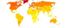 There is a well-established global correlation between multiple sclerosis and latitude; there is a higher multiple sclerosis prevalence in northeastern regions than in the south and western regions. At the same time, on average higher vitamin D levels are found in the south and western regions than in the northeast.[15] Based on this correlation and other studies, the higher intake of vitamin D is associated with a lower risk for MS. Research has also shown that in relation to geological position (latitude), patients who later developed MS saw an earlier age of onset of symptoms in the more northern latitudes than in the southern hemisphere.[15][16][17][18] The mechanism for this association is not fully established, however, a proposed mechanism involves inflammatory cytokines. Hypovitaminosis D is associated with an increase in proinflammatory cytokines and decrease in anti-inflammatory cytokines. The increase in these specific cytokines is associated with the degradation of the myelin sheath.[19]