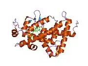 - ↑ He B, Wilson EM (March 2003). "Electrostatic Modulation in Steroid Receptor Recruitment of LXXLL and FXXLF Motifs". Mol. Cell. Biol. 23 (6): 2135–50. doi:10.1128/MCB.23.6.2135-2150.2003. PMC 149467. PMID 12612084.