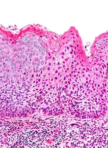 Micrograph of differentiated vulvar intraepithelial neoplasia. H&E stain.