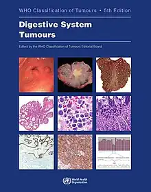 The WHO Classification of Tumours series, more commonly known as the WHO Blue Books, published by the WHO's IARC, is a series of books that classify tumours according to principally its location and histopathology.[2][3] They are compiled by expert consensus, teams of specialists at the International Agency for Research on Cancer, who summarize information from literature.[1] Terms included in the books appear in the international classification of diseases for tumours.[4][5]