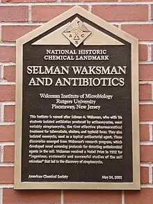 The Waksman Institute of Microbiology is a research facility on the Busch Campus of Rutgers University. It is named after Selman Waksman, a student and then faculty member at Rutgers who won the Nobel Prize for Medicine in 1952 for research which led to the discovery of streptomycin. The Nobel Prize is on display in the lobby of the institute. The institute conducts research on microbial molecular genetics, developmental molecular genetics, plant molecular genetics, and structural and computational biology.