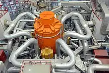 38 nuclear reactors were in operation throughout Russia in 2021, which collectively produced approximately 20.7% of the country's electricity.[19] In the Soviet era, nuclear power generation was developed cognizant of a closed nuclear fuel cycle desired by the government.[20] This philosophy was centered around the goal of repurposing spent fuel products and recycling uranium and plutonium that were recovered from fuel products, ultimately reducing nuclear waste and maximizing reusable fissile material.[20] In 2016, Russia's state-owned Rosatom State Nuclear Energy Corporation developed the BN-800 fast breeder reactor, which is projected in 2022 to transition to exclusively utilize mixed uranium-plutonium fuel in continued efforts to close the nuclear fuel cycle.[21]